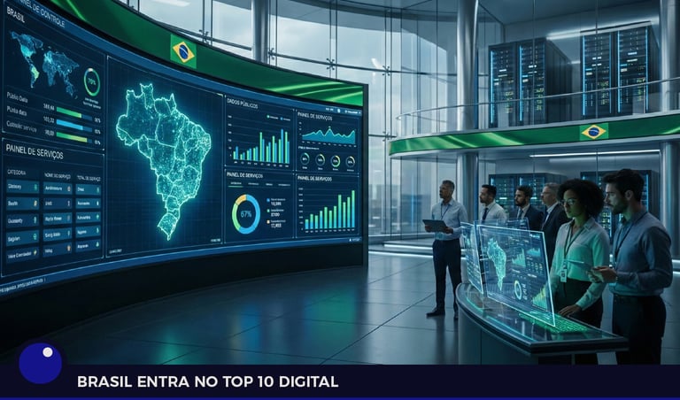 Evolução consistente em políticas públicas digitais impulsiona o país para a 10ª posição global, com desempenho acima da média internacional e destaque na América Latina.
