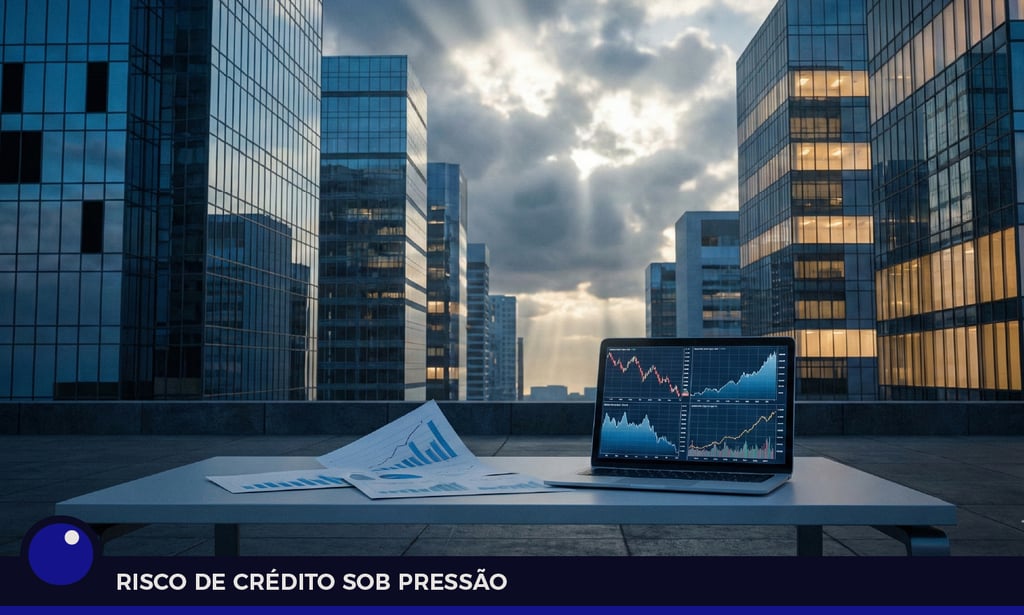 Indicadores bancários reforçam esse movimento, com crescimento da inadimplência em empréstimos comerciais e industriais nos Estados Unidos. A deterioração ocorre de forma mais intensa nas carteiras de bancos regionais, tradicionalmente mais expostos às pequenas e médias empresas, ampliando o risco de crédito em segmentos mais vulneráveis ao aperto monetário.