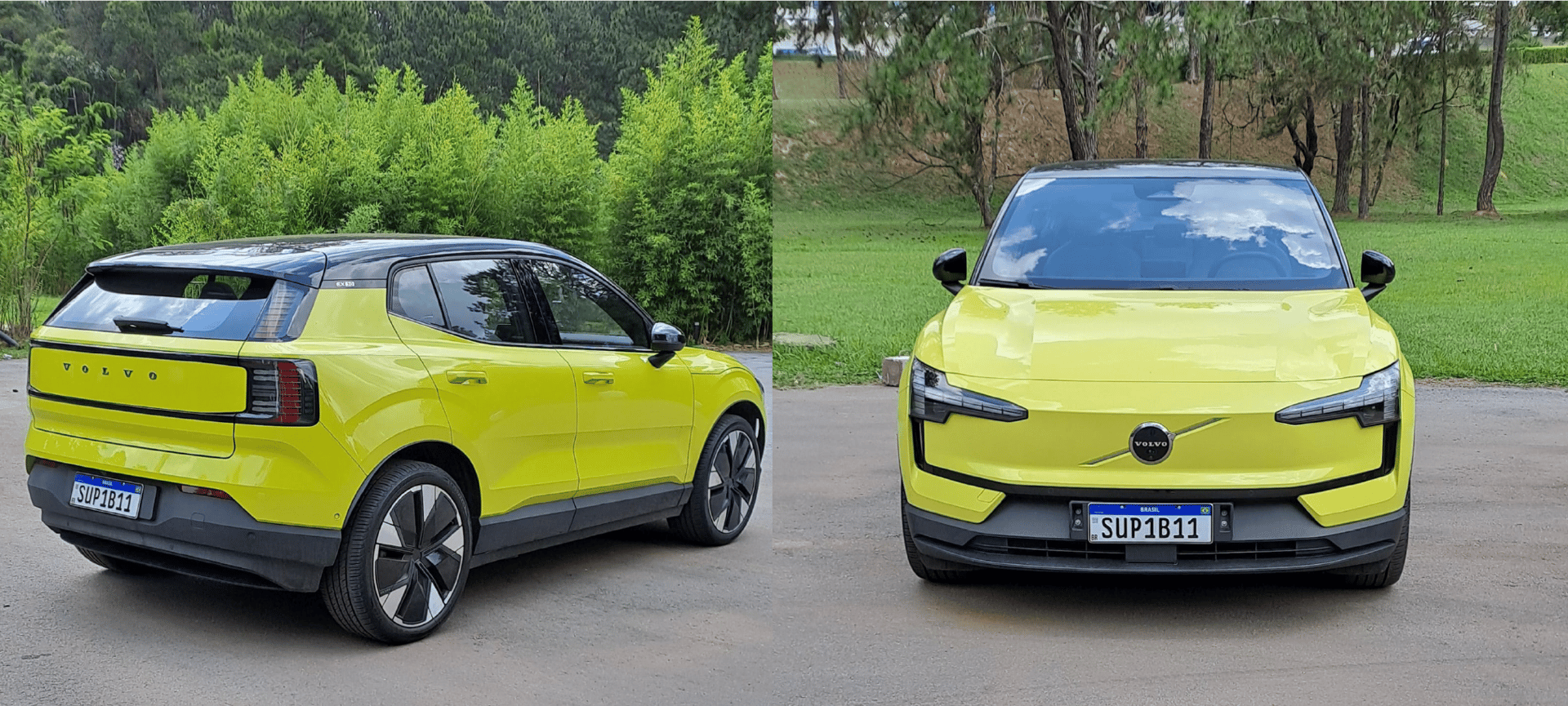 O Volvo EX30 se destaca pelo design escandinavo minimalista, tamanho compacto (4,23m de comprimento) e uma proposta de preço agressiva para o segmento premium.